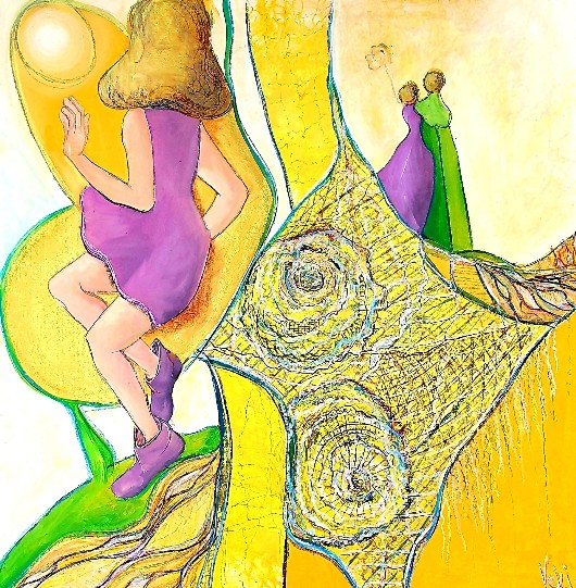 La proposta artistica nel suo insieme abbraccia il sentire contemporaneo, ove il dipingere non si limita agli aspetti legati al decoro formale, ma ha funzione di esprimere importanti gradi di libertà emozionale. Questo avviene, a maggior ragione, nelle opere che trovano approdi in parte o totalmente astratti, di maggior istintività, come “Quando le strade si dividono” o “L’albero e i suoi frutti”. In queste opere emerge un vasto mondo onirico che vede la scala e l’albero elementi fondanti, quasi l’artista insegua sogni ad occhi aperti. Intrigano anche i collage, ove si attivano riflessioni sul nostro vivere e sul sociale e ove la pittura da personale si fa impegno di umana partecipazione al consesso sociale, riflettendo su diverse tematiche di attualità e mettendo in gioco i sentimenti.